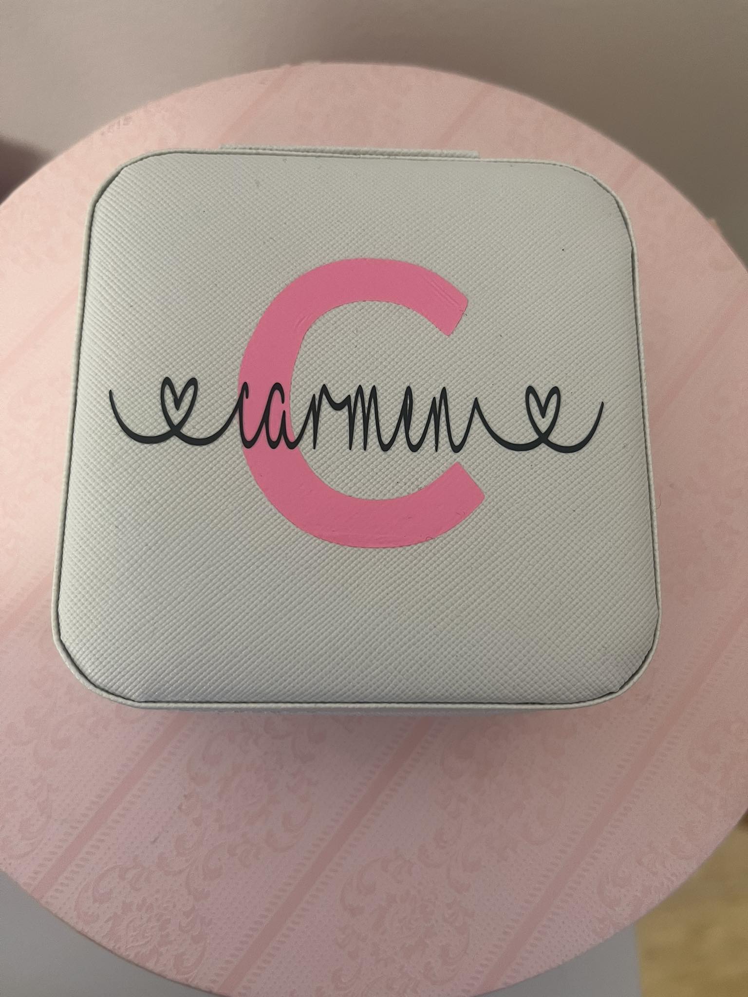 Joyero de viaje personalizado con la inicial y el nombre en los colores que elijas